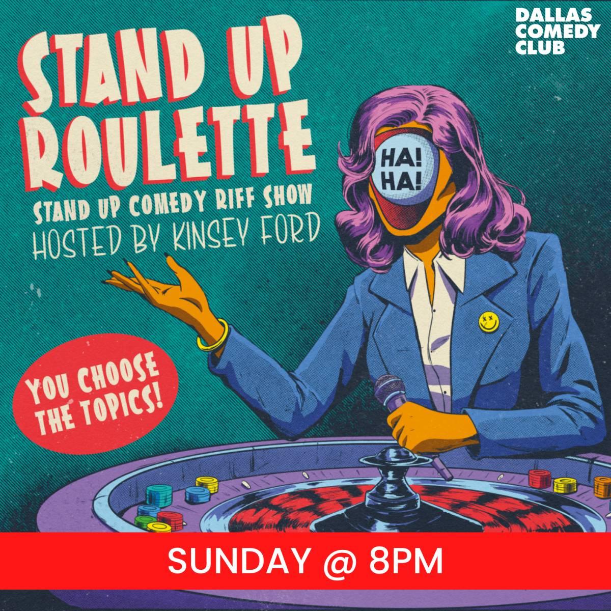 Stand-Up Roulette at Dallas Comedy Club delivers a fast-paced comedy show featuring a unique blend of stand-up comics and improvisers, all performing on topics chosen by the audience. Hosted by Kinsey Ford, this interactive 18+ event promises a distinctive night of laughter where attendees directly influence the performance at the Club Theater.