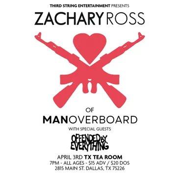 Zachary Ross of Man Overboard is coming to Tx Tea Room on April 3rd with special guest Offended By Everything! This event is *AGE RESTRICTION*. Persons under 21 are subject to a $5 minor fee upon ent
